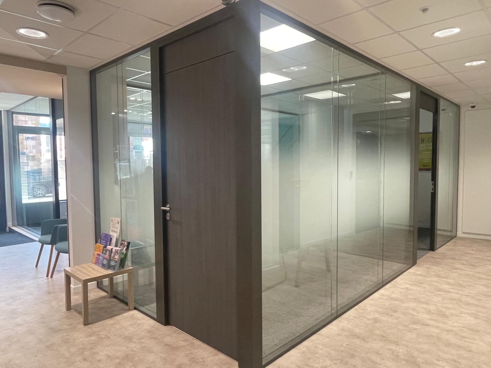 Cet aménagement a été pensé pour créer des espaces confidentiels, essentiels au respect du secret professionnel bancaire, tout en offrant un cadre moderne et fonctionnel pour les équipes et les clients.